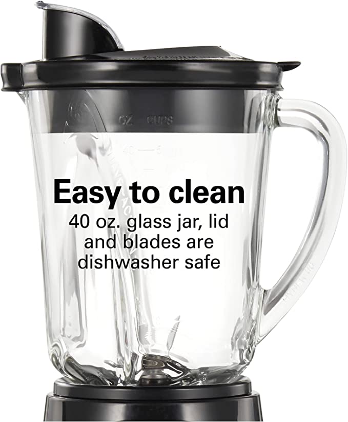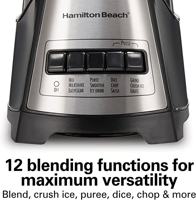 Hamilton Beach Power Elite Wave Action Blender-for Shakes and Smoothies, Puree, Crush Ice, 40 Oz Glass Jar, 12 Functions, Stainless Steel Ice Sabre-Blades, Black (58148A)